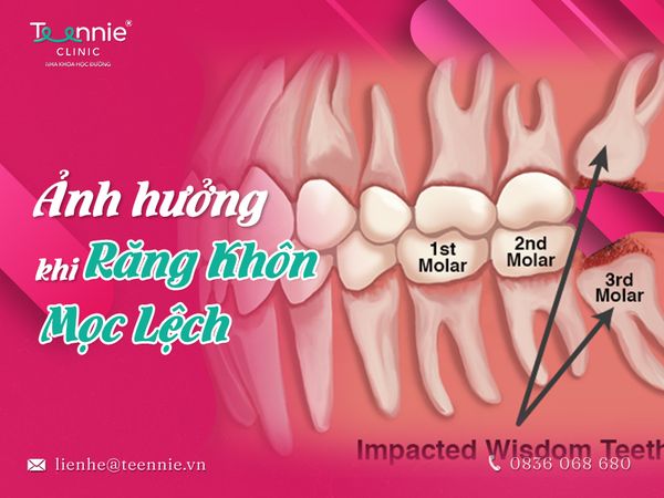 Răng khôn mọc lệch sẽ chèn, đẩy chiếc răng cạnh đó vô tình làm thay đổi vị trí ban đầu của răng số 7 khiến chúng chen chúc và lệch lạc, dẫn đến đau sưng hàm, và mất thẩm mỹ.